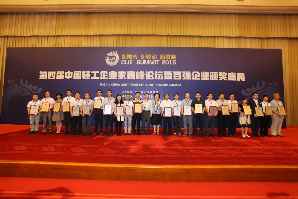 ?????? 以“新絲路、新驅(qū)動、新常態(tài)”為主題的“第四屆中國輕工企業(yè)家高峰論壇暨輕工百強企業(yè)頒獎盛典” 6月12日在北京京西賓館隆重舉行。大會向社會各界隆重發(fā)布“2014年度中國輕工業(yè)百強企業(yè)”榮譽榜單以及市場能力、盈利能力、價值能力、成長能力、電商能力、財政貢獻(xiàn)及科研投入等七大分項能力百強榜單。
