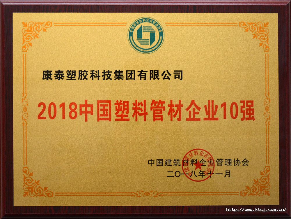 康泰塑膠、康泰管業(yè)榮膺“2018中國塑料管材企業(yè)10強